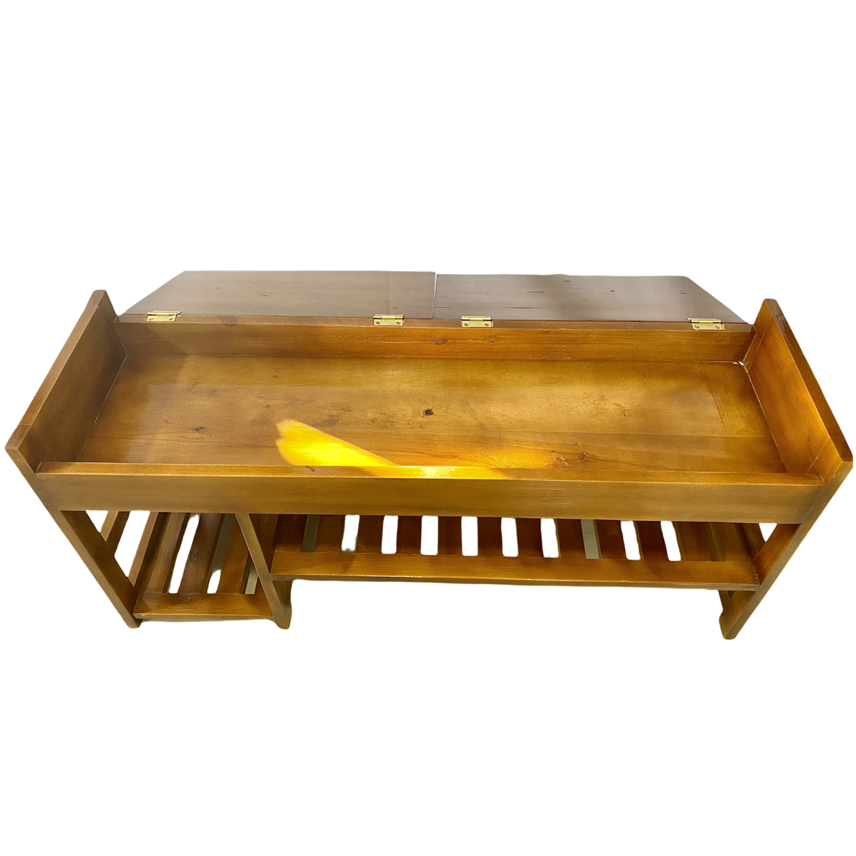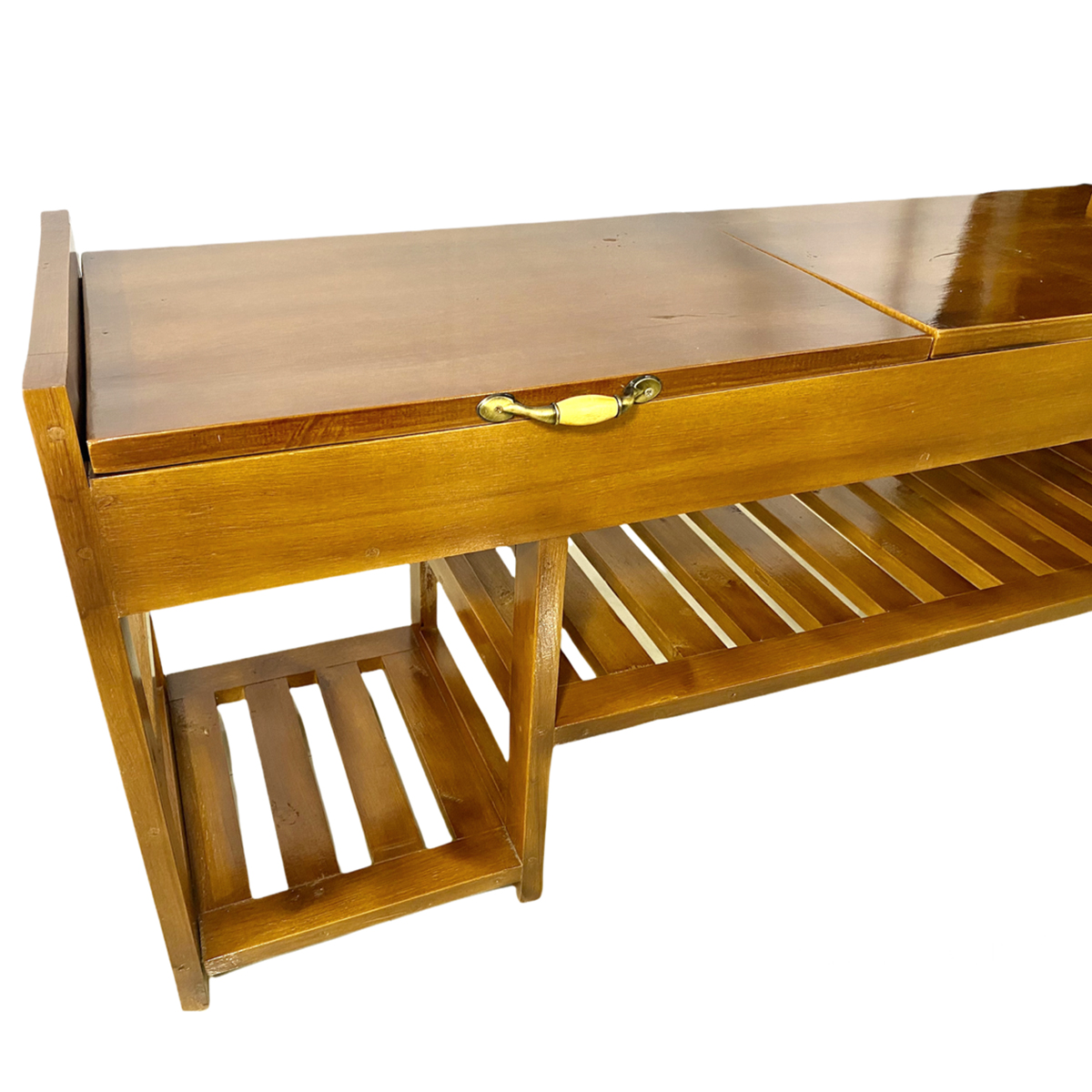 El asiento de la banca se abre y dentro se pueden almacenar artículos para su calzado.